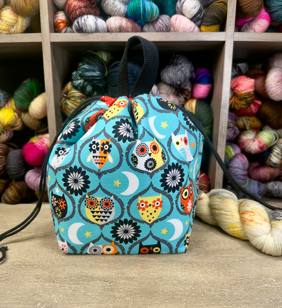 This bag is made from high-quality fabric to suit all your large project needs. This bag is roomy with a boxed bottom and will be great for any project and accessories that you may have. This bag will hold multiple balls of yarn and your project too! The bag closes with a drawstring to secure your projects.