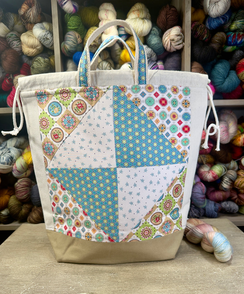 Each bag features a different Quilt (Patchwork) Square. Each is one of a kind. I wanted to explore doing bags in different, much loved or new block patterns in a variety of prints, much like the other bags I make, but in unexpected patterns and prints. I love the simplicity of traditional quilt block patterns and have had fun exploring new. As a child, I started sewing with doing quilt blocks and I am finding myself drawn back to quilting and wanted to extend this into my project bags for others to enjoy.