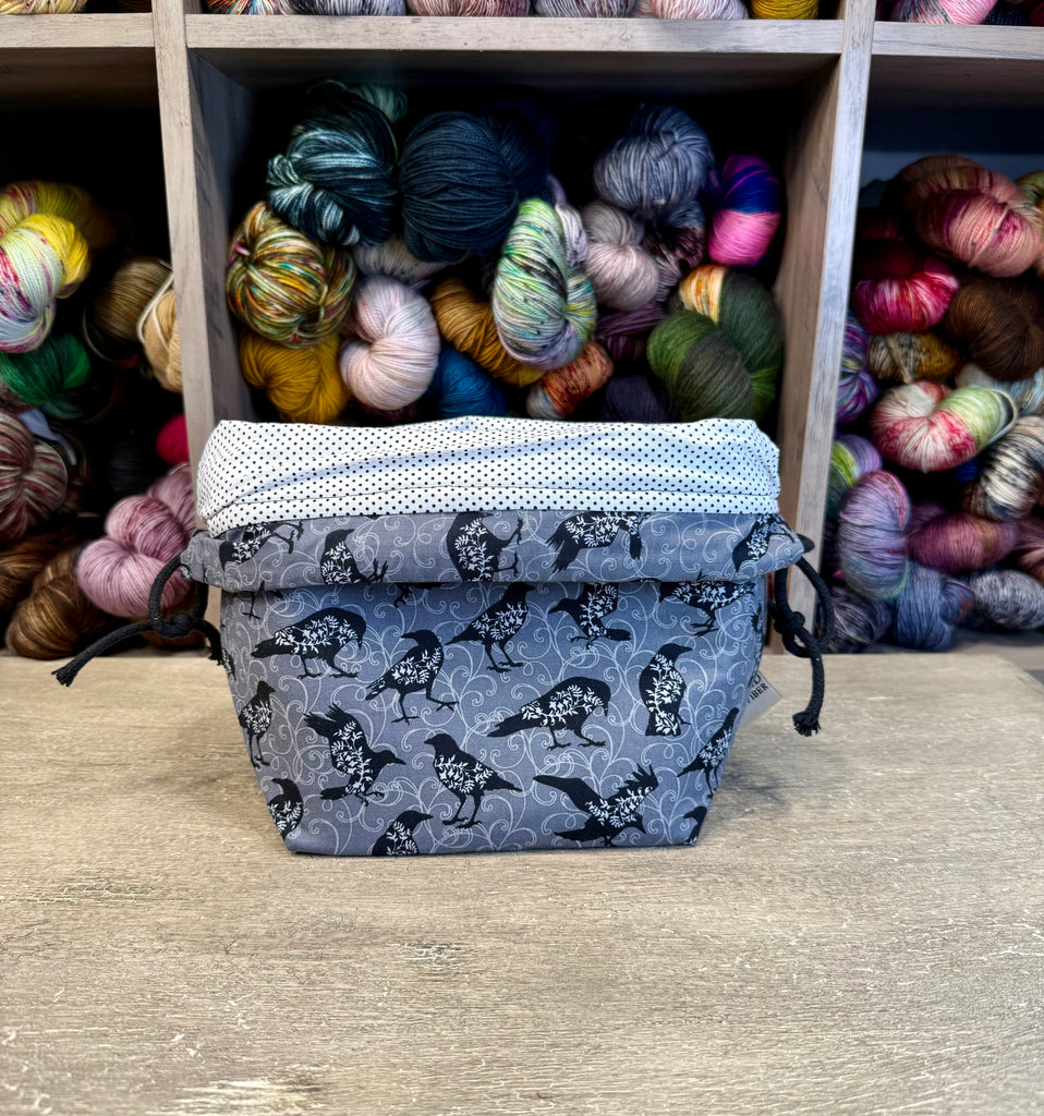 - Stitch marker fob with plastic ring sewn into the inside of each bag.