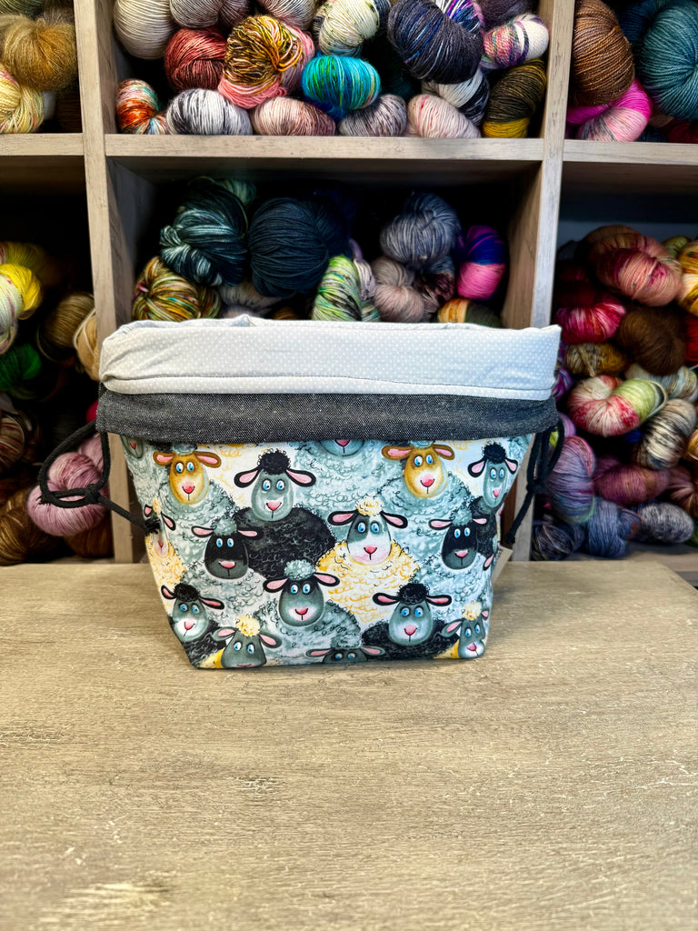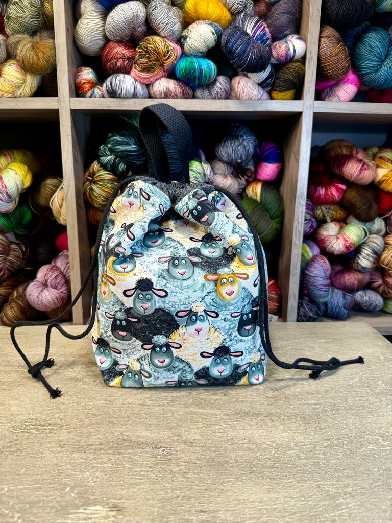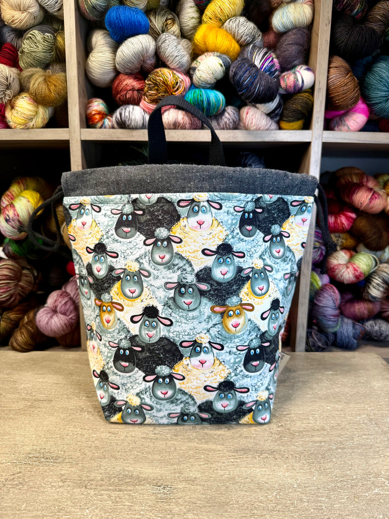 This bag is made from high-quality fabric to suit all your large project needs. This bag is roomy with a boxed bottom and will be great for any project and accessories that you may have. This bag will hold multiple balls of yarn and your project too! The bag closes with a drawstring to secure your projects.